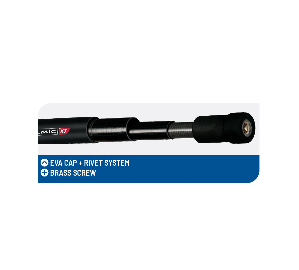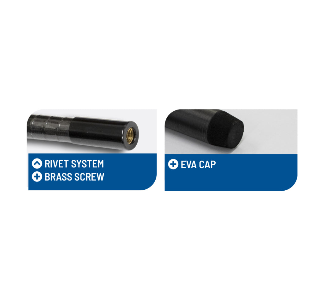 L’intreccio in carbonio a spirale sulle sezioni ed il rinforzo nella zona d’innesto, conferiscono all’attrezzo maggiore rigidità e robustezza.